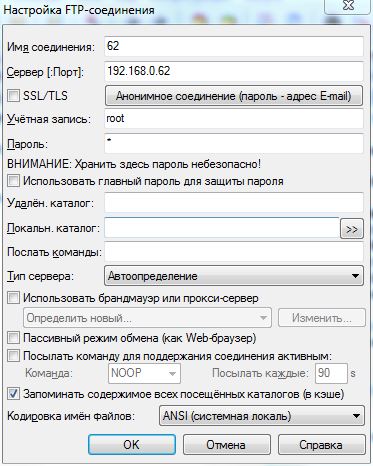 Пример настройки Тотал командера: Меню: Сеть > Соединение с FTP-сервером > Кнопка Добавить